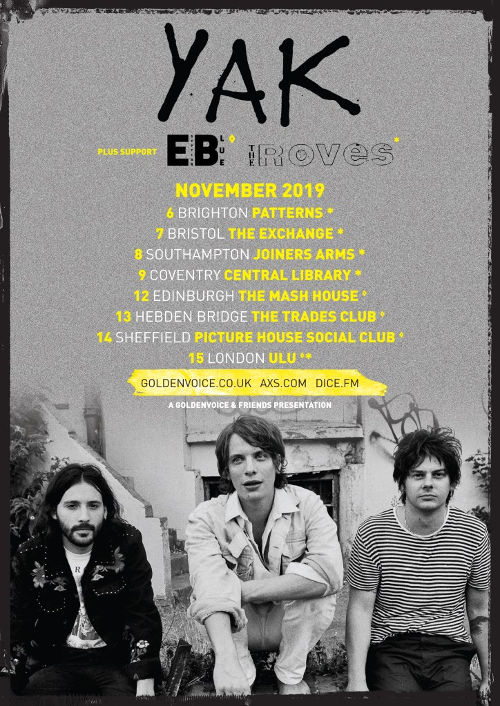 The Roves are back in Blighty to start a run of dates supporting @yakband. Go check them out this week in Brighton, Bristol, Southampton, Coventry and London.